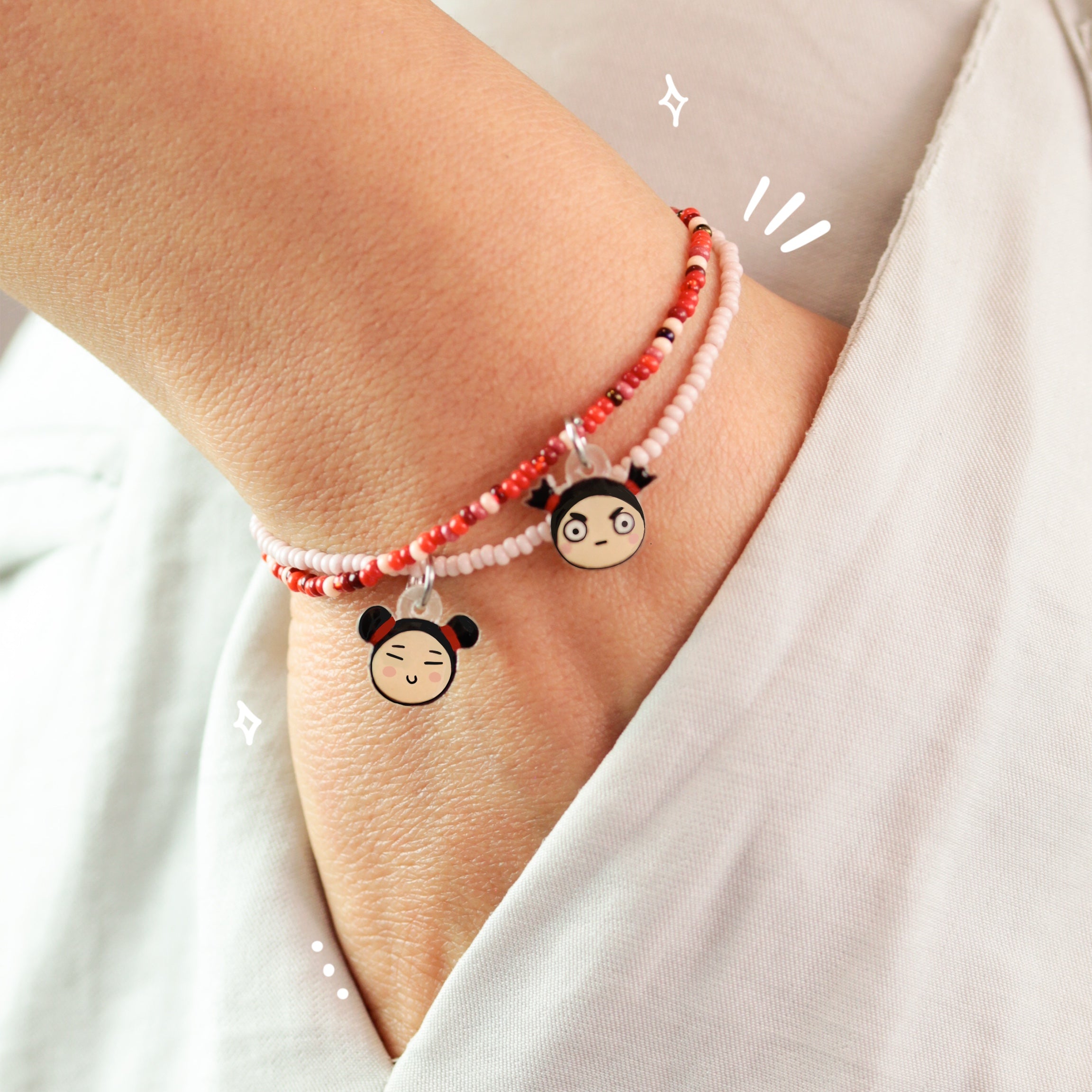 Material: Pulseras elaboradas con cuentas y elástico, con un pequeño remate en chapa de oro, acompañadas de dijes temáticos elaborados y pintados a mano, cuentan con un recubrimiento epoxi que les brinda durabilidad.