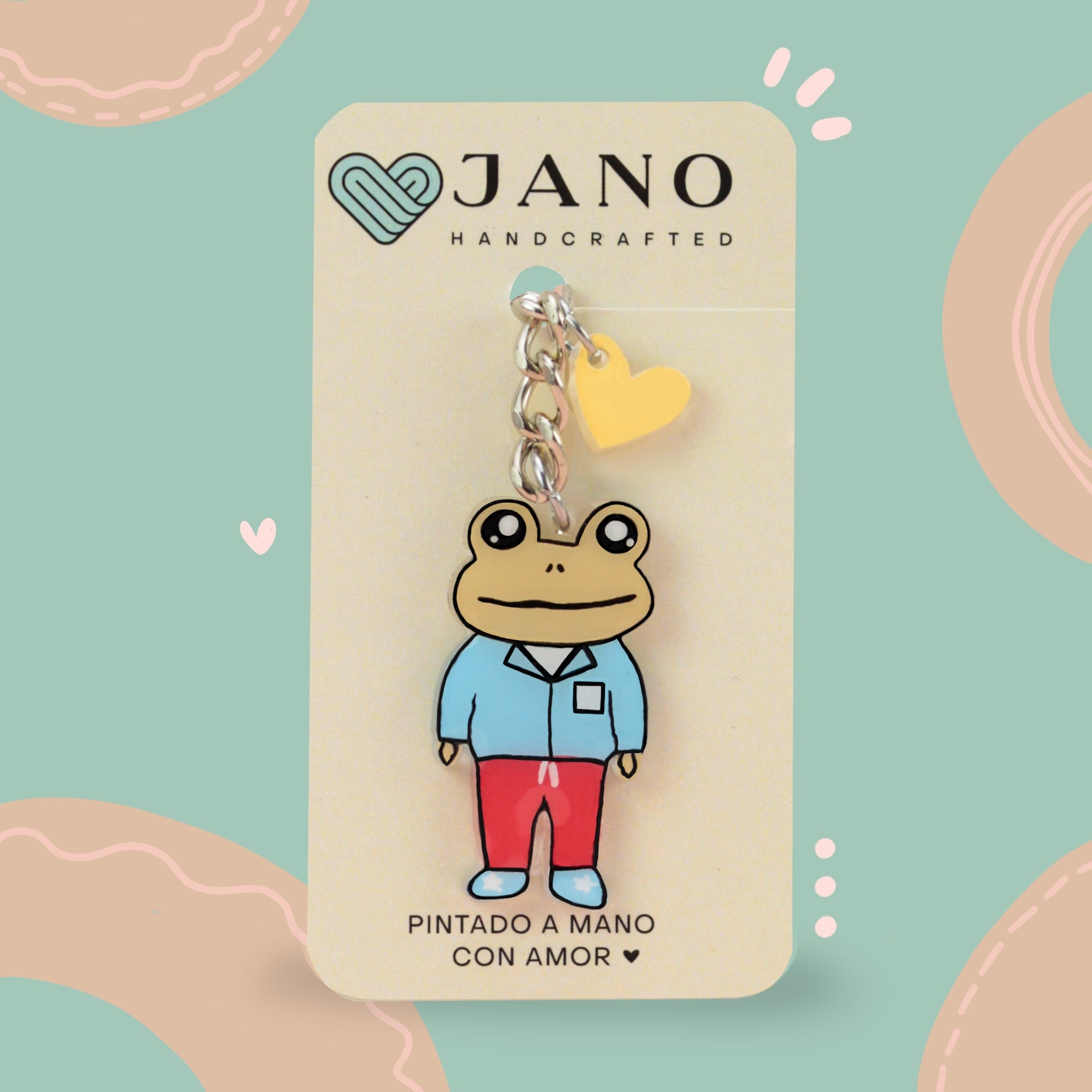 Dijes super divertidos pintados a mano, con trazos que otorgan un carácter único a cada pieza. Sujeto a una cadena en acero inoxidable.