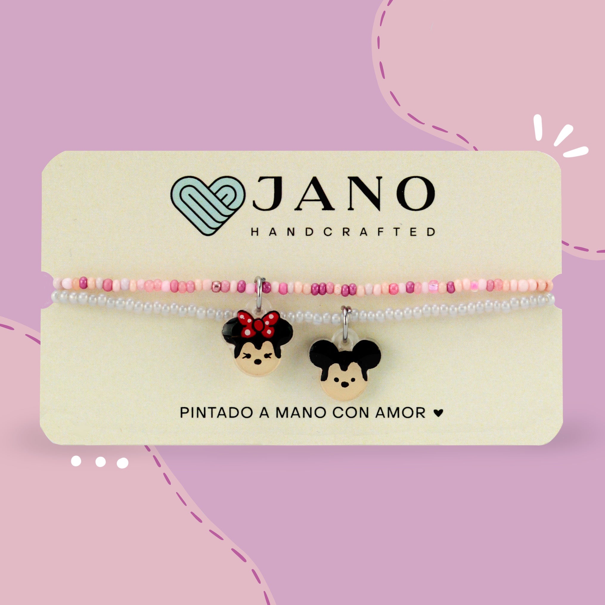 Material: Pulseras elaboradas con cuentas y elástico, con un pequeño remate en chapa de oro, acompañadas de dijes temáticos elaborados y pintados a mano, cuentan con un recubrimiento epoxi que les brinda durabilidad.