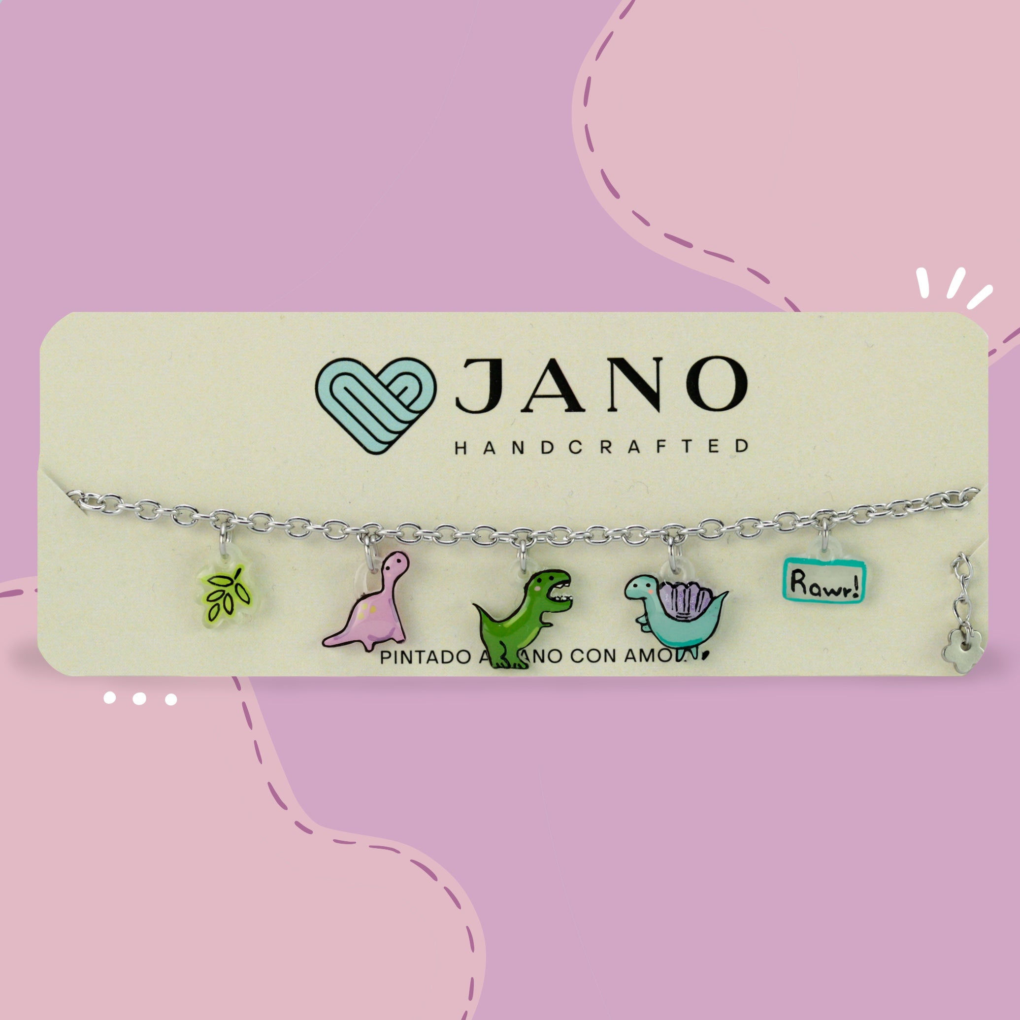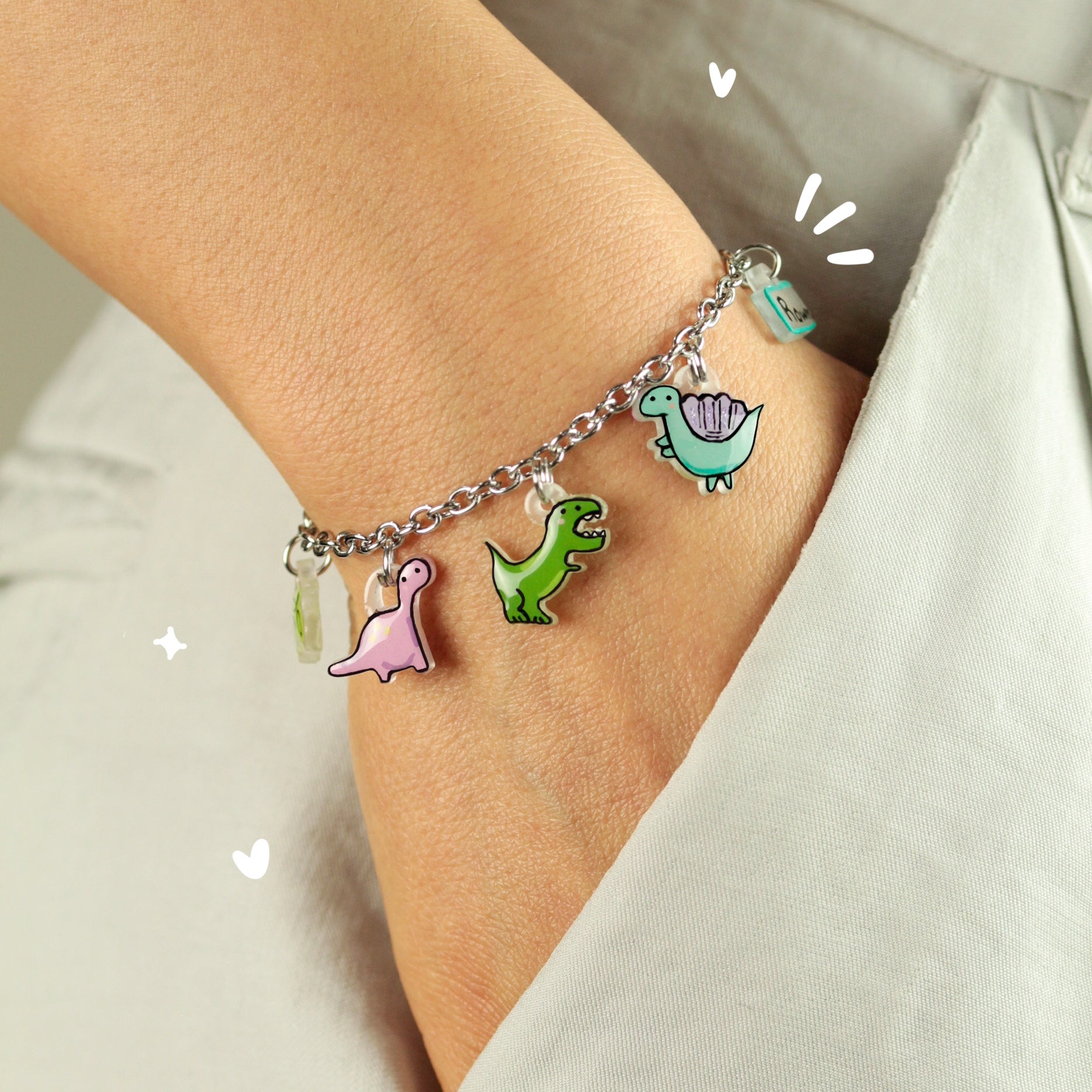 Material: Pulsera de acero inoxidable , acompañada de dijes temáticos elaborados y pintados a mano.